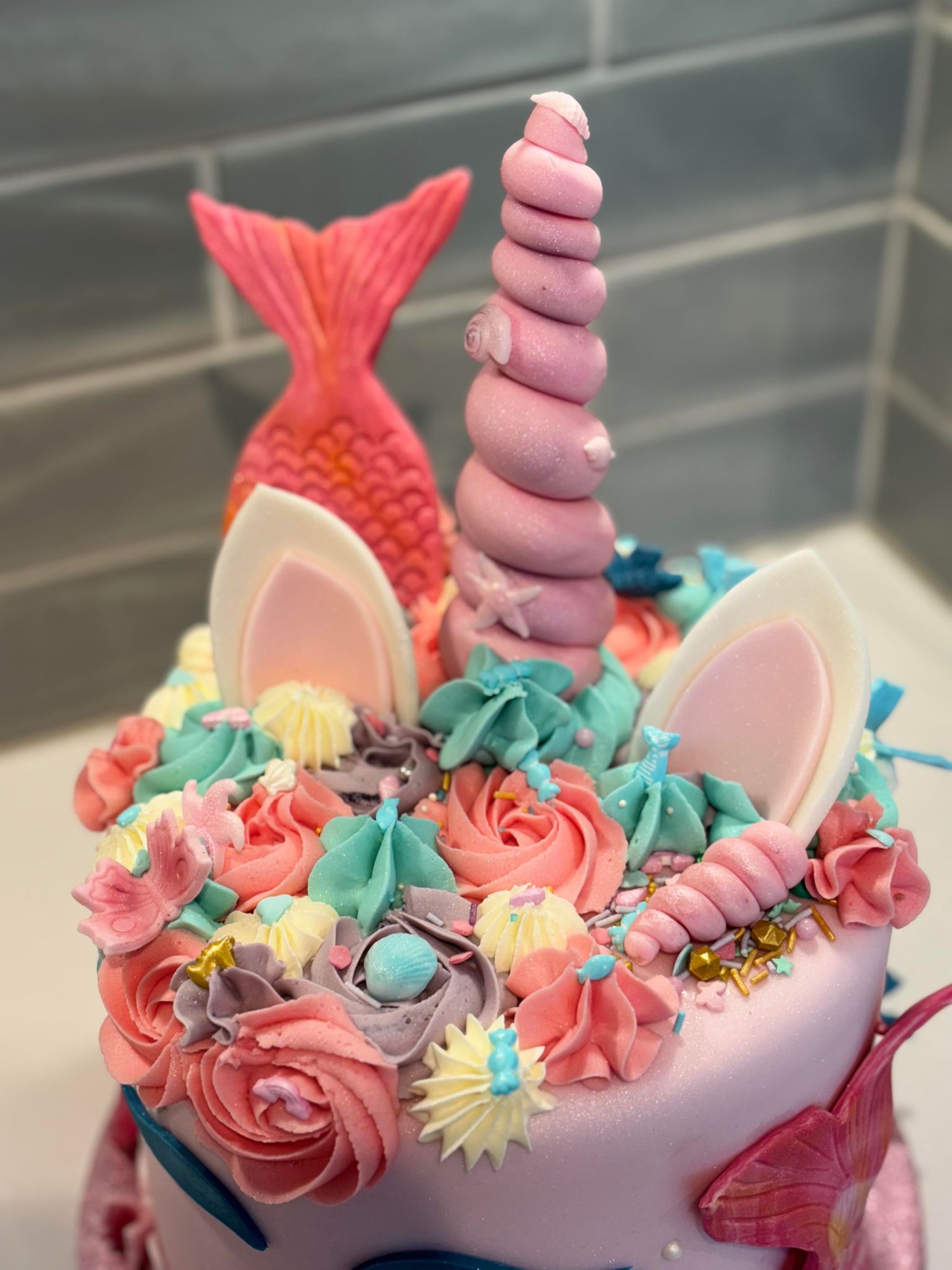 Endelig har jeg forsøkt meg på en "Unicorn"-kake, eller enhjørning som det heter på norsk. Det er en veldig populær kake blant båd...